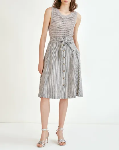 Felix schwarz-weiß gestreifter Rock aus 100% Leinen