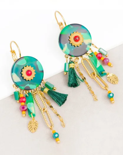 Ohrringe Kerine aus goldfarbenem Stahl und rotem Jaspis