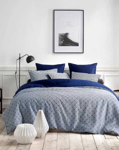 Wendbares Bettbezug-Set Eloise aus Baumwollsatin, blau