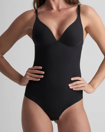 Schwarzer, figurbetonter Bodystring mit Bügel