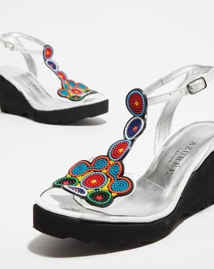 Weiße/mehrfarbige Nebulo-Ledersandalen mit Keilabsatz - 7 cm Absatz