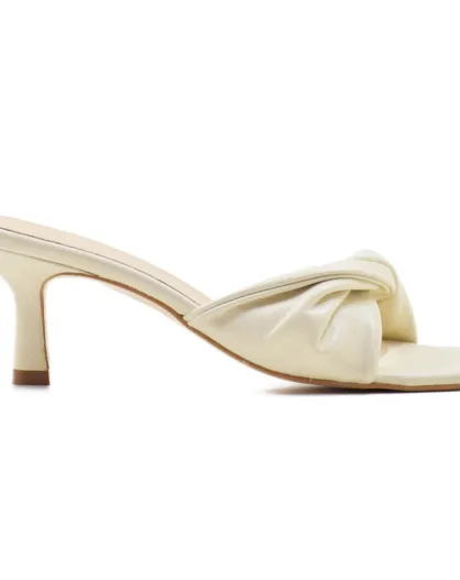 Beigefarbene Pantoletten Christy aus Leder mit 6 cm Absatz