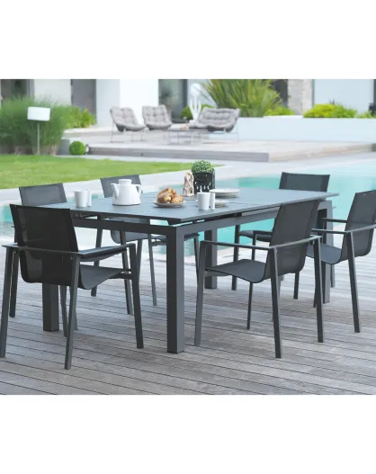 Gartenset Miami ausziehbarer Tisch + 6 anthrazitfarbene Sessel
