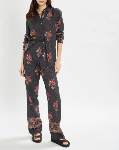 Priya fließende Hose mit anthrazitfarbenem Aufdruck