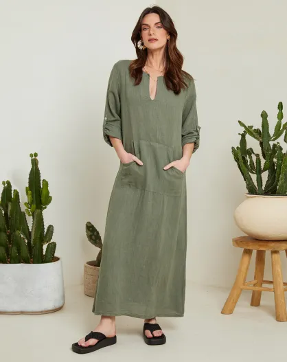 Felicie khakifarbenes Kleid aus 100% Leinen
