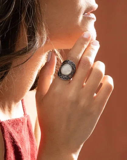 Tlaloc Ring aus Sterlingsilber und Perlmutt 4,5 ct