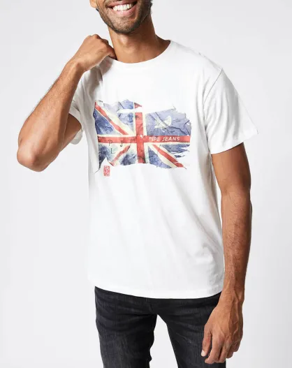 Weißes T-Shirt mit seitlicher Flagge