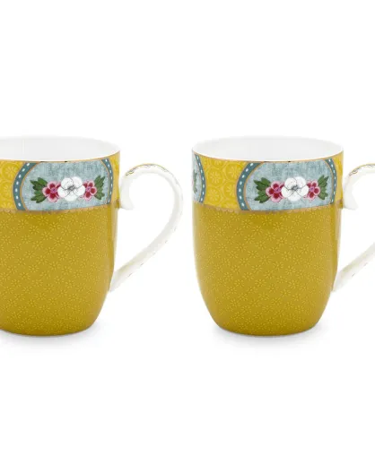 2 kleine gelbe Blushing Birds Porzellantassen — 14,5 cl