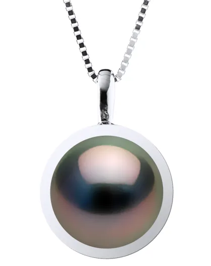 Weißgoldanhänger und runde Tahitiperle aus schwarzem Tahiti