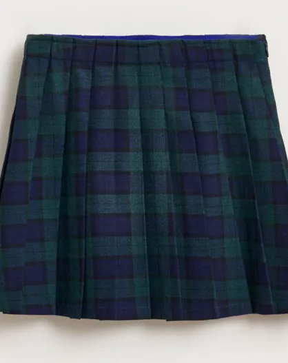 Asra plissierter Kurzrock mit blau/grünem Karomuster