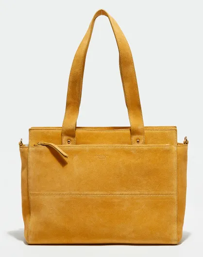 Maelys Schultertasche aus ockerfarbenem Samt aus Leder - 38x28x8 cm