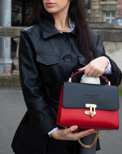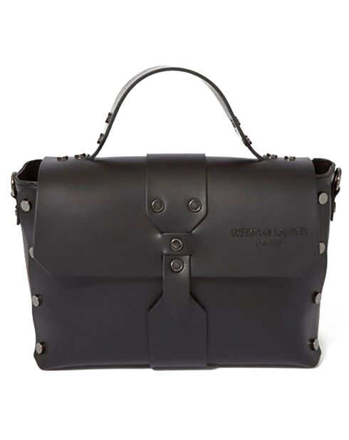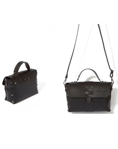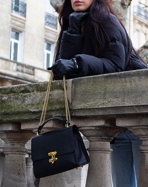 Marina Handtasche aus schwarzem Samtleder mit Schulterriemen - 34x31x14 cm