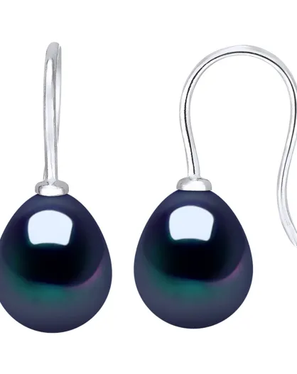 Ohrringe aus Weißgold mit schwarzen Tahiti-Birnen-Süßwasserperlen