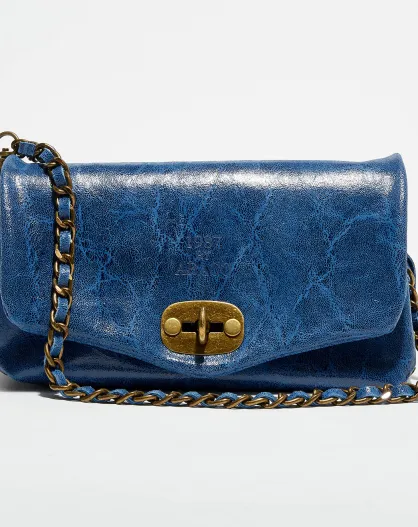 Marineblaue Schultertasche Hero aus Leder - 26x14x7,5 cm