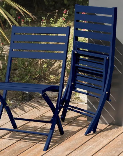 2 zusammenklappbare Gartenstühle Marius aus nachtblauem Aluminium - 46x41xH.82 cm