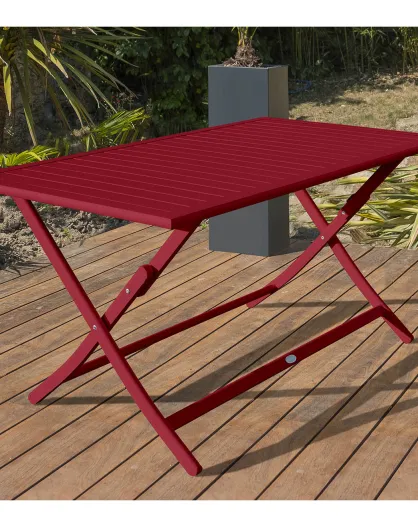 Klappbarer Gartentisch Marius aus rotem Aluminium - 140x80xH.73 cm
