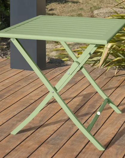 Klappbarer Garten-Säulentisch aus lagunengrünem Aluminium - 70x70xH.73 cm