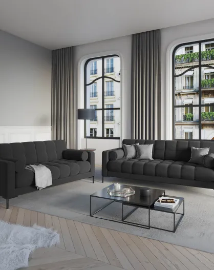 Samtsofa Bali 3-Sitzer dunkelgrau - 177x92x78 cm