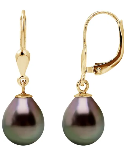 Perlenohrringe aus Gelbgold und Tahiti-Birne