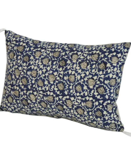 Kissenhülle mit indigofarbener Blume, 30 x 45 cm