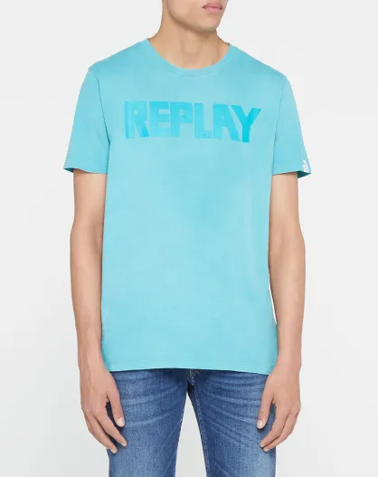 T-Shirt aus 100% Bio-Baumwolle mit himmelblauem Zentrallogo