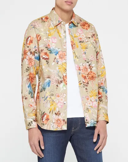 Slim Fit-Hemd mit beigen Blumen