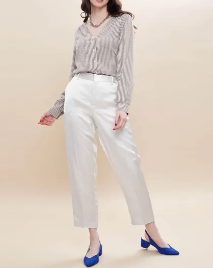 Pavel hellgraue Satinhose aus Leinenmischung