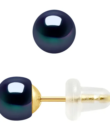 Ohrringe aus Gelbgold und Süßwasserperlen mit schwarzen Tahiti-Knöpfen