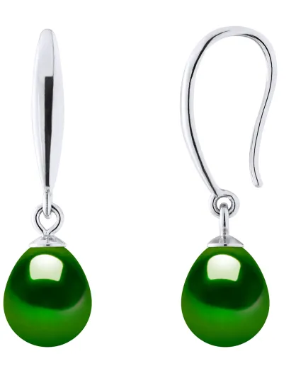 Ohrringe aus grünem Birnenmalachitsilber und Süßwasserperlen