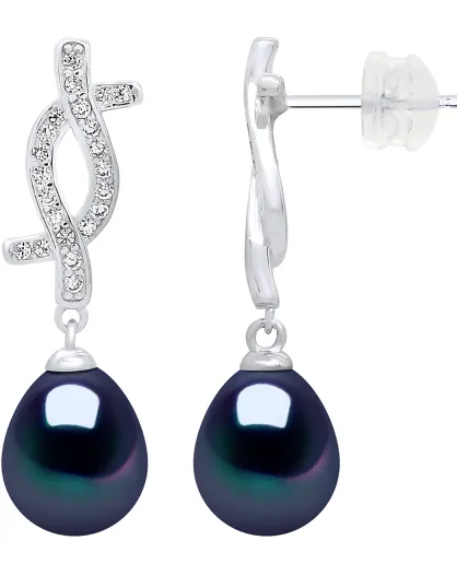 Ohrringe aus Rhodiumsilber, Zirkonia und Süßwasserperlen mit schwarzen Tahiti-Birnen-Süßwasserperlen