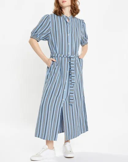 Laurier blaues gestreiftes langes Hemdkleid