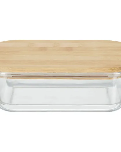 Lunchbox aus transparentem Glas und Bambus — 14,7 x 10,7 x 5,3 cm