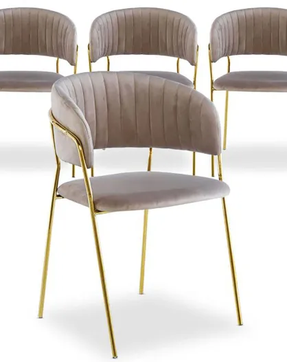 4 Tabata-Stühle aus taupefarbenem Samt - 53,5 x 52,2 x 79 cm