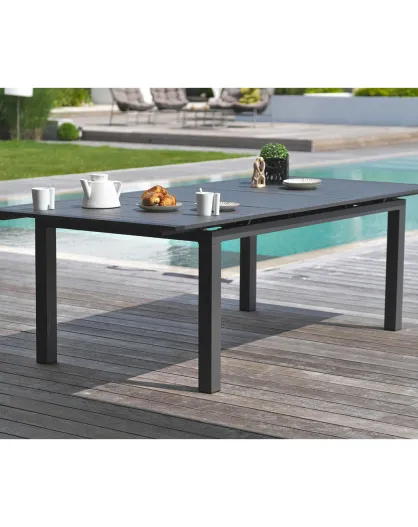 Miami Gartentisch aus Aluminium mit automatischer Verlängerung in Anthrazitgrau - 240/300x100x77 cm