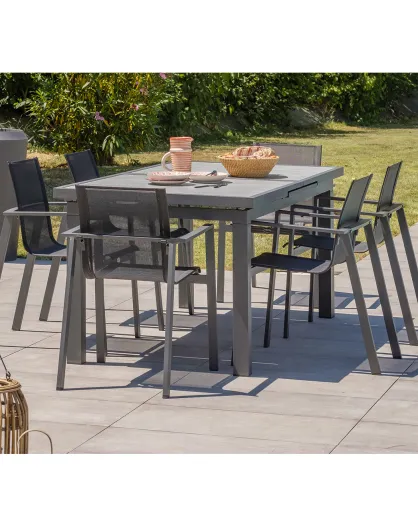 Gartenset Venise-TB250 ausziehbarer Tisch + 6 Sessel Alu-Miami-FT stapelbar Anthrazitgrau