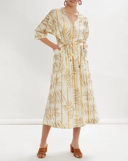 Langes, ecrufarbenes, bedrucktes Kleid im Kimono-Stil von Parker