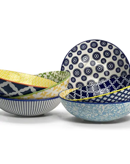 6 mehrfarbige Sabae-Porzellan-Suppenteller - D.21 cm