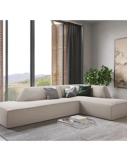 Sao 4-Sitzer-Ecksofa aus beigem Samt, für rechts, 273 x 180 x 69 cm