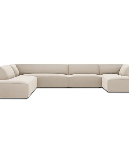 Panorama-Ecksofa links Sao Velvet 7 Sitzer beige - 366x273x69 cm