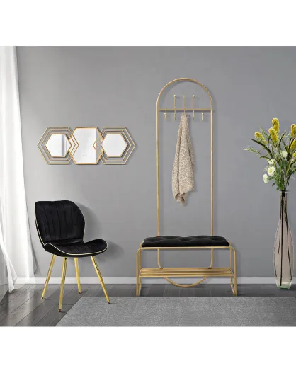 Flurmöbel mit goldener/schwarzer Bank - 80x38,5x180 cm