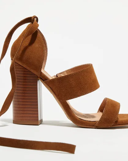 Ledersandalen aus Kamelfarbenem Samt — 9,5 cm Absatz