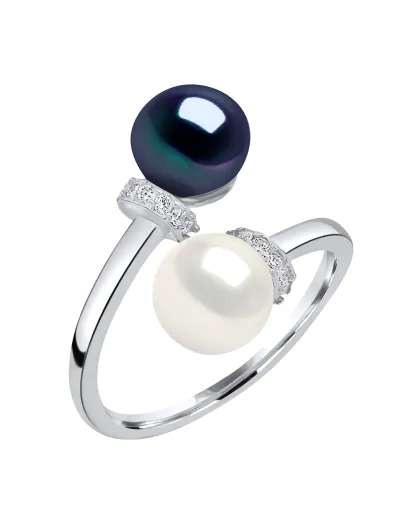 Verstellbarer Ring von Toi & Moi aus Silber und Süßwasserzuchtperlen, naturweiß/schwarz, Tahiti