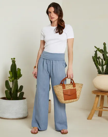 Bernsteinhose aus 100% Leinen mit indigoblauen Taschen