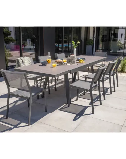 Gartenset Stockholm-TB300-CER ausziehbarer Tisch + 6 stapelbare Stockholm-CH-Stühle & 2 stapelbare Stockholm-FT-Sessel Anthrazitgrau