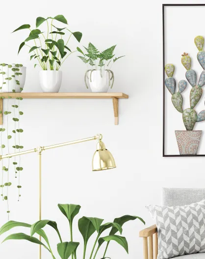 Wandpaneel aus Eisen mit grün/blauem Kaktusrahmen - 31x2,5x90 cm