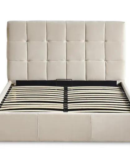Luftani Doppelbett mit Hubgestell Beiger Samt - 160x200 cm