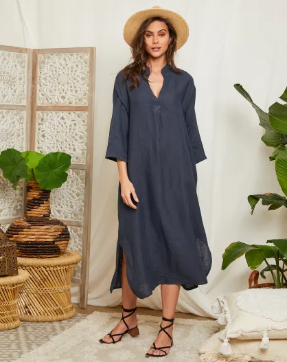 Marineblaues Kleid Elise aus 100% Leinen