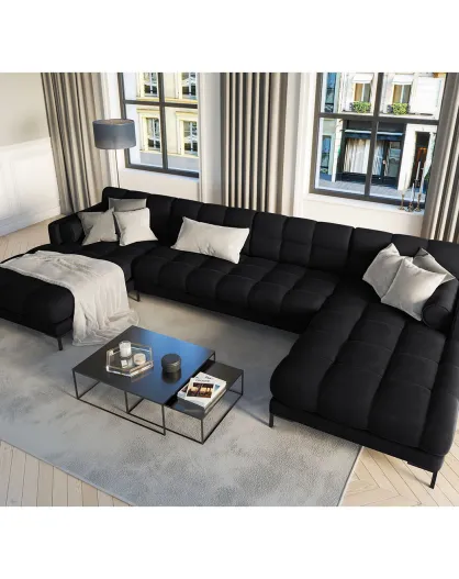 Velvet Bali 7-Sitzer-Panoramasofa, schwarz, 383x185x75 cm