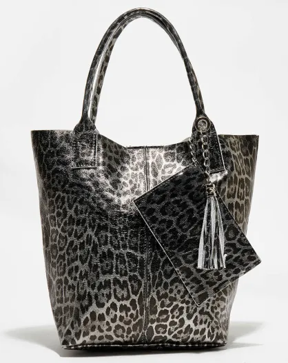 Yana Tragetasche aus Leder mit schwarzem Leopardenmuster - 40x25x35 cm