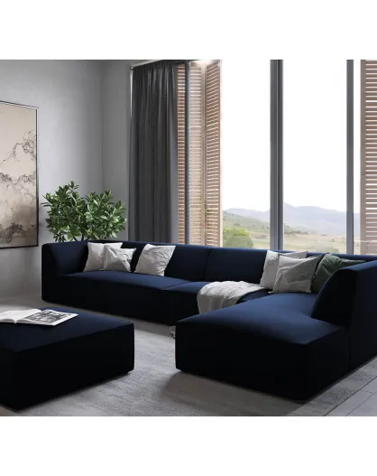 Velours Sao 5-Sitzer-Ecksofa rechts königsblau - 366x180x69 cm